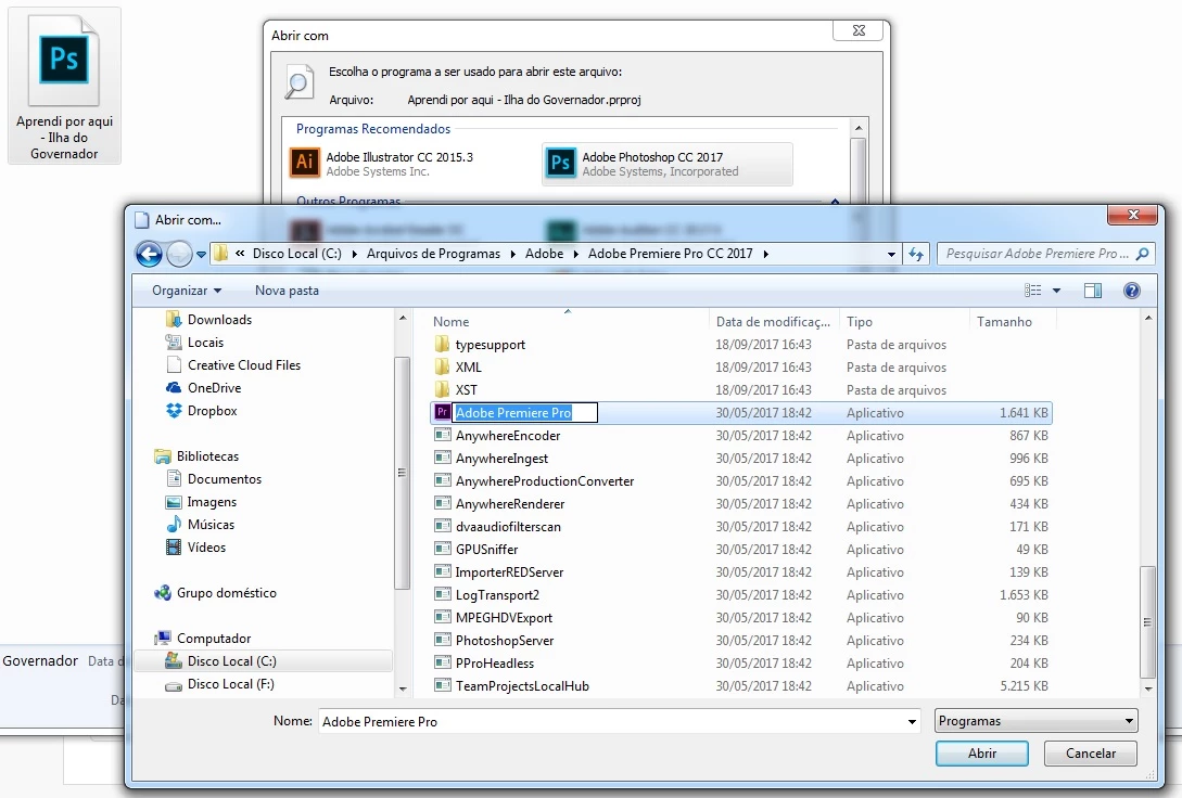 My projects PRPROJ are oppening as photoshop or illustrator. If a change for premiere as the image show, when i check the option, the premiere don't save.