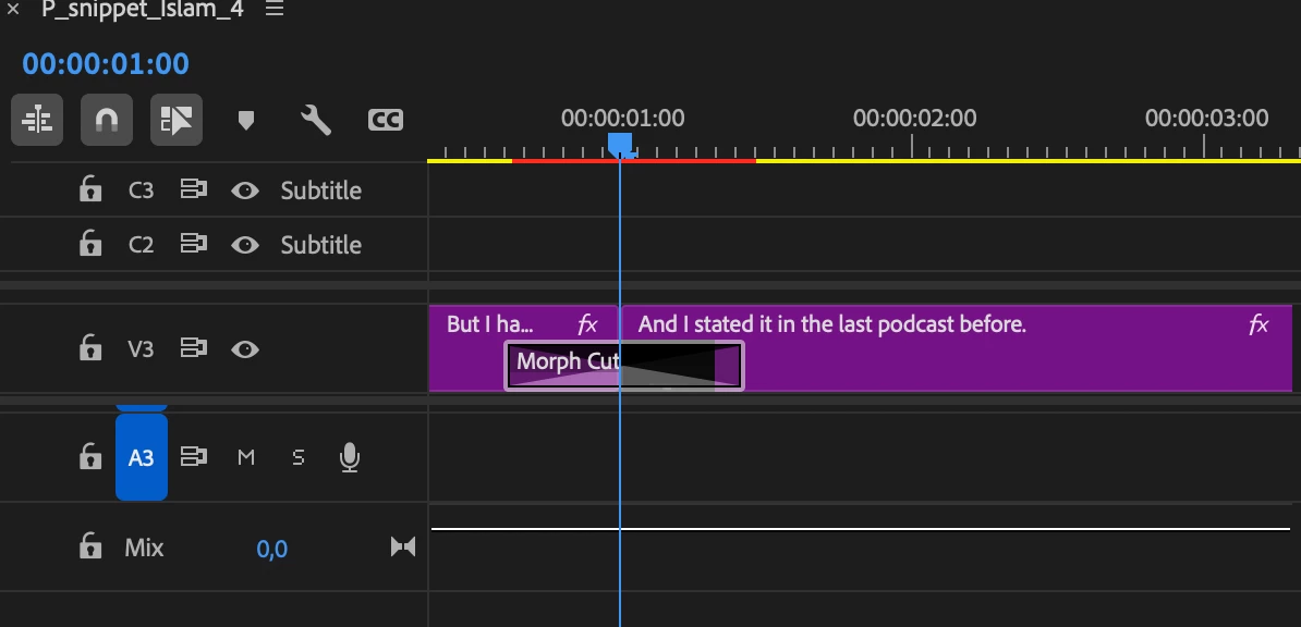 When I upgrade captions to graphics, they appear purple, which is fine, but I want to apply a Morph Cut transition between them. Morph Cut works when I apply it manually, but I can’t copy and paste the Morph Cut transition to multiple clips — I’d like to apply it to all at once.