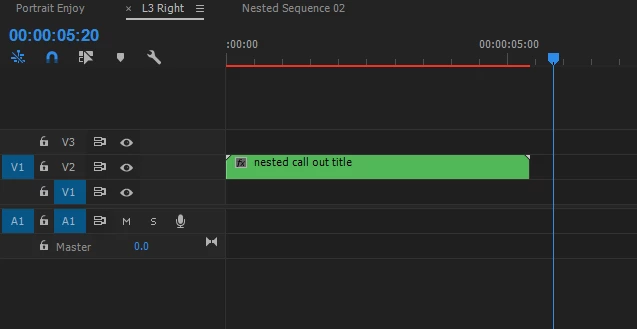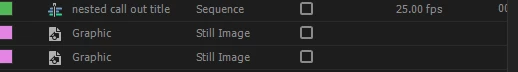 What I want to do is to create a call out title template that I can reuse in every other project. So I create the different graphic elements of my call out title, select them all -> right click -> "nest". This unites them in a new nested sequence and creates this green bar. I then save and close the project.