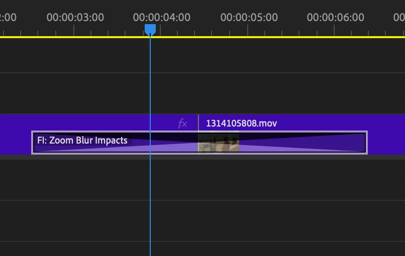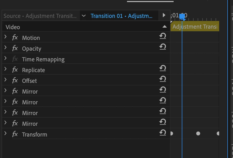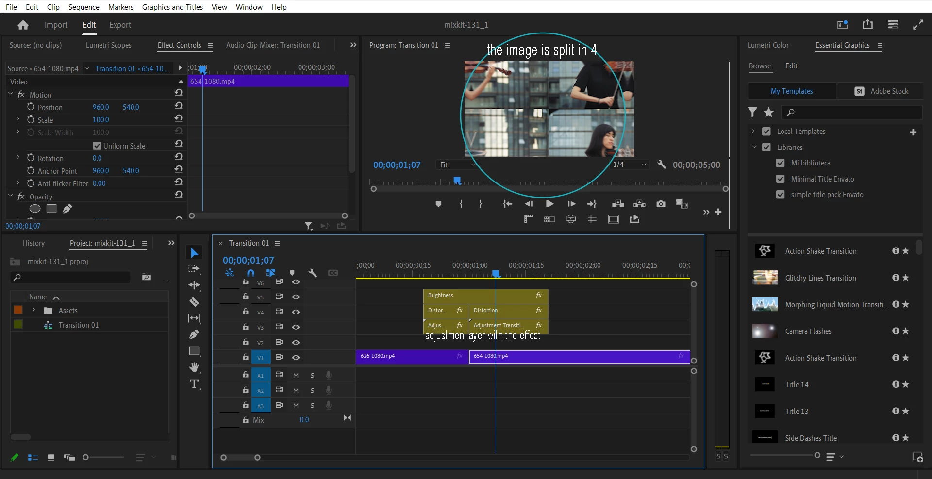 I've opened the project in Premiere Pro but when I view the effect in the timeline, one of the adjustment layers where the zoom out effect is applied generates four frames of the second image.