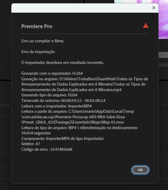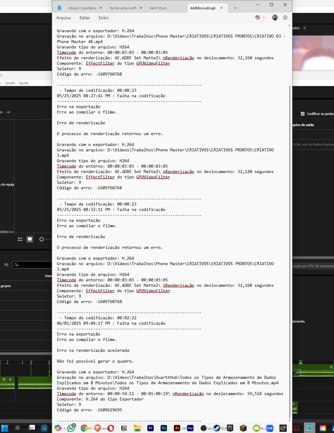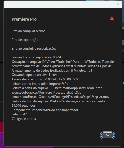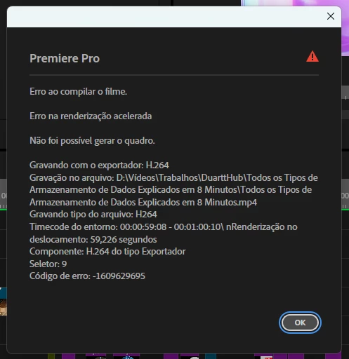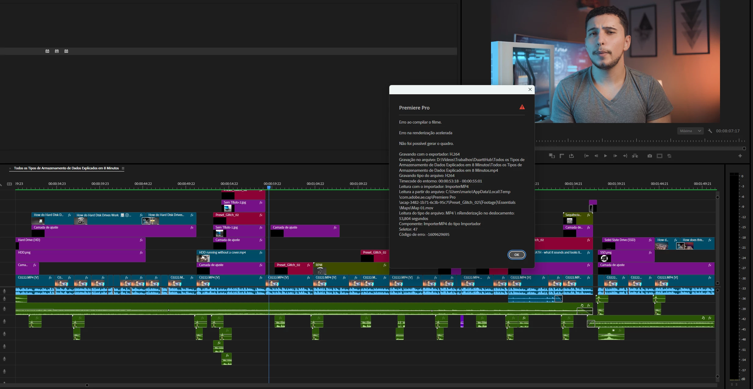 Na última semana, TODOS os 5 projetos que criei no Premiere Pro deram erros de rendenização/exportação. Demorei HORAS para conseguir exportar porque só dava erro atrás de erro.