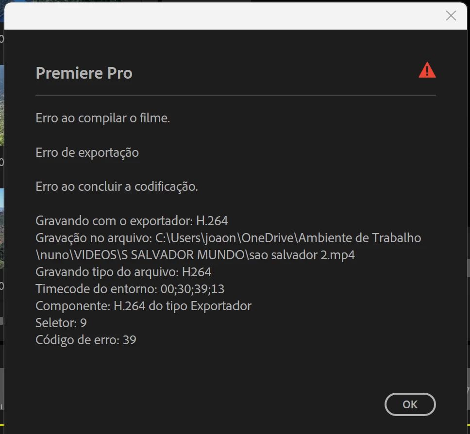 Quando tento rederizar um trabalho no PP, no final da renderização aparece o seguinte alerta e não fica concluida a renderização