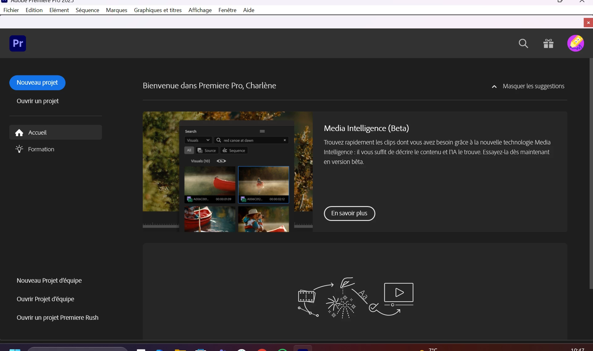 Lorsque je lance Première Pro sur mon pc après téléchargement il y a une barre rouge sans texte qui s'affiche en haut de mon écran, je ne sais pas à quoi elle correspond. Lorsque je clique sur la croix un écran noir s'affiche. Lorsque je clique par exemple sur "fichier" en haut, j'ai pleins de fonctionnalités grisées. Avez-vouis une idée d'où peut venir le problème ?