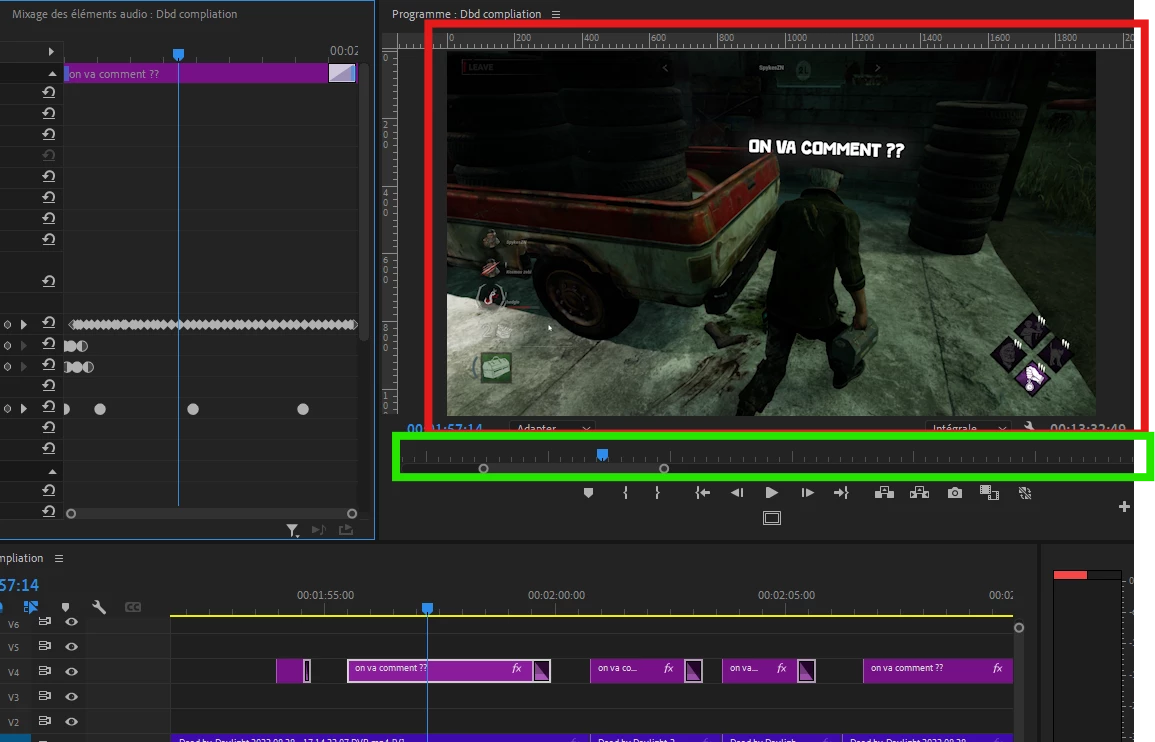 Hello, j'explique vite mon problème, dans la version 2024 de premiere pro, j'ai remarqué que dans l'apercu, quand je scroll avec la souris, il zoom au lieu d'avancer dans la timeline. (la zone encadrée en rouge) Y'a t-il moyen de changer ca ? on peut quand meme scroller avec le panneau en dessous (en vert) mais c'est beaucoup moin agréable surtout pour des tracking, etc... Si quelqu'un sait comment faire pour ne plus zoomer et scroller dans le temps a la place ca serait parfait ! Merci et belle journée a tous.