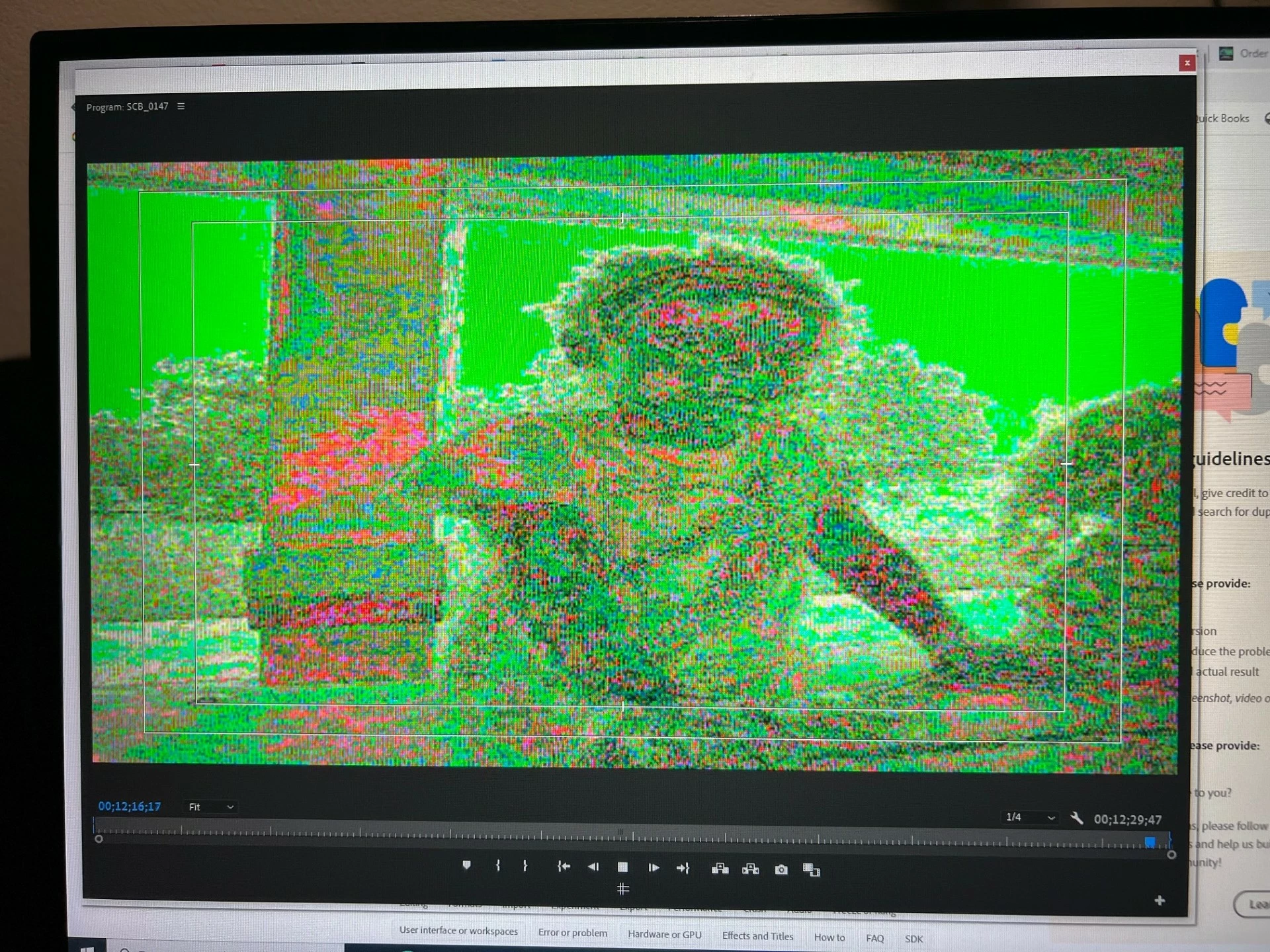 When in pause, the video looks normal. But I get this when trying to play the video. It makes it nearly impossible to edit the video. Does anyone know what I am doing wrong or how to fix this?