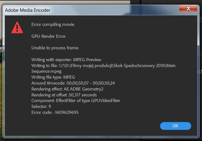 I have switched from Sony Vegas to Adobe Premiere Pro recently and I am not able to render my first project. Famous "GPU Render Error":