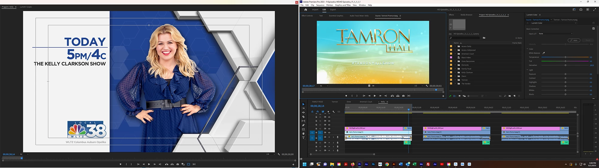 Okay, I tried expanding the Premiere Pro window across both monitors. When I "Send to Media Encoder" in this workspace, it does not close the program monitor panel. It's kinda awkward looking and functioning. I can't maximize the window or it reverts to one monitor. I had to make the screen grab small, but you can see under the program monitor panel, my desktop is visible. If I drag the window down, I don't have access to the timeline controls at the bottom of that panel. I would really like this to work like it did a few weeks ago before it changed.