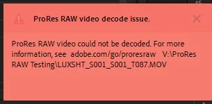 When I try to import ProRes RAW Video from the Panasonic S1H/Atomos Ninja V combo, I get an error complaining about the ProRes RAW Video cannot be decoded.