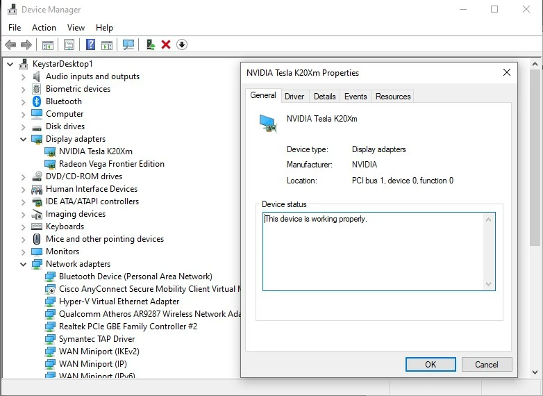 - NVidia Tesla K20X 5GB VRAM w/451.82 NVidia graphics driver
