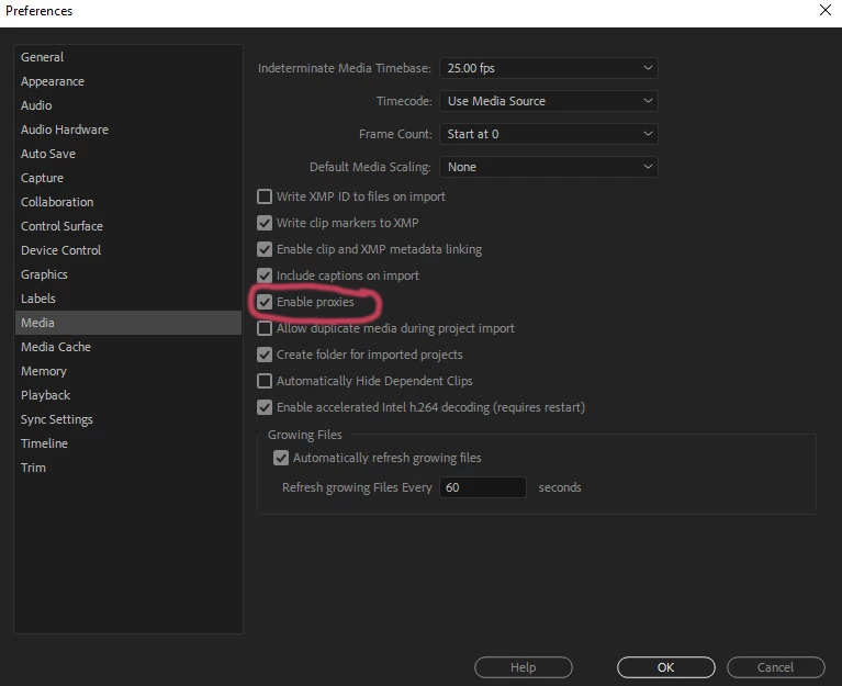 After doing *literally* everything else I could possibly think of to get my proxies playing smooth, THIS turned out to be what was wrong!  I never had any issues with proxies in the past and lately it has been a nightmare - but to find that THIS little tickbox is the reason is ridiculous.  How did it even get unticked to begin with? I certainly didn't turn it off! Thanks for this solution!