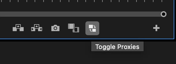 The proxy icon with a diagonal line through it indicates that proxies have been disabled. However, the proxies are still linked and can be re-enabled by clicking the Toggle Proxies button. Note that there isn’t an icon for “bad” proxies. If they go offline, Premiere Pro will prompt you to relink them.