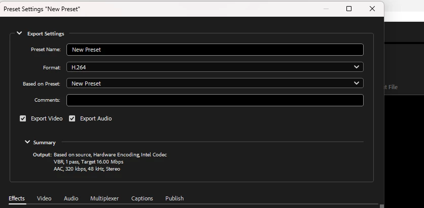 First i went to "Adobe Media Encoder", then chose "Create Encoding Preset".