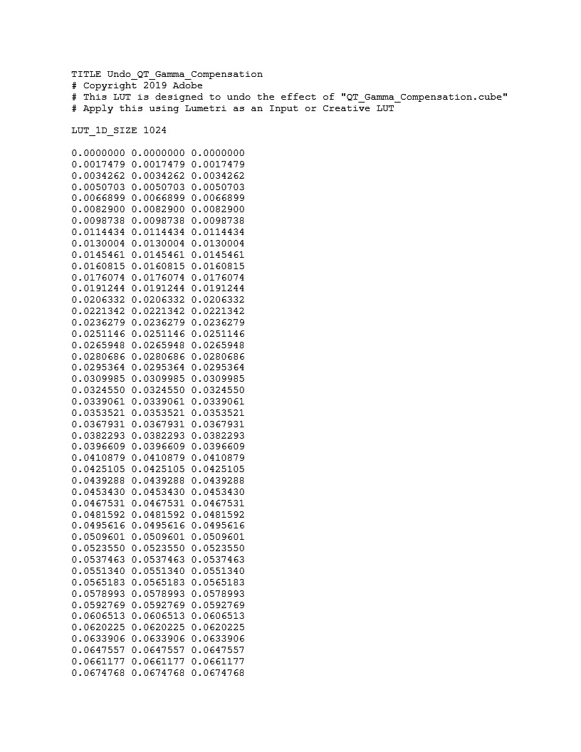 QT Gamma Compensation LUT .cube file not available