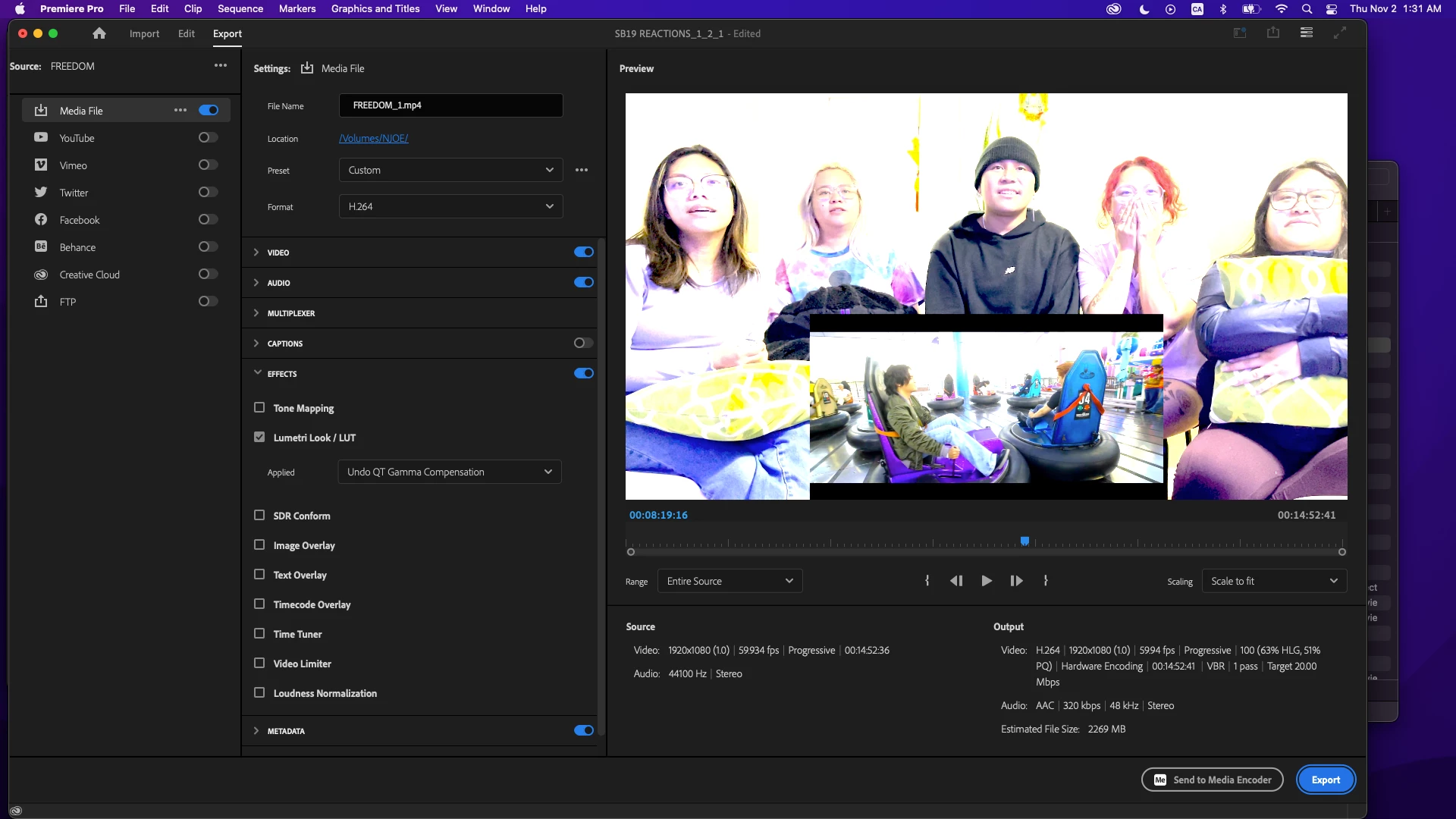 This seems to have been the fix, thank you so much for the super insightful and easy to follow instructions! As this was the first time I've ever used a LUT, can you advise me on how to remove the LUT completely? If I have the Effects section toggled on at Export (even without Lumetri Look/LUT checked), the display still shows this oversaturation. Did I make a permanent change on my program?