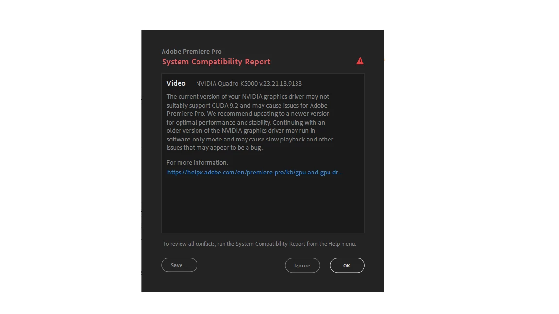 For the record, the most recent driver version for that K5000 is the 474.44 driver version, released this past June 26. That driver version is numerically too low to work properly in Premiere Pro 2024 (if your system can even run it at all), therefore permanently locking the renderer to the software-only mode. Premiere Pro 2024 requires driver versions higher than 522.xx for Nvidia GPUs to even work properly.