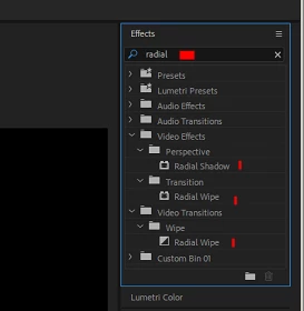I just downloaded Premier Pro for a trial period. I am trying to make a video with pictures and want to add a border to the photos. When trying to type "Radial" or "Shadow" in the effects, I do not get any results.