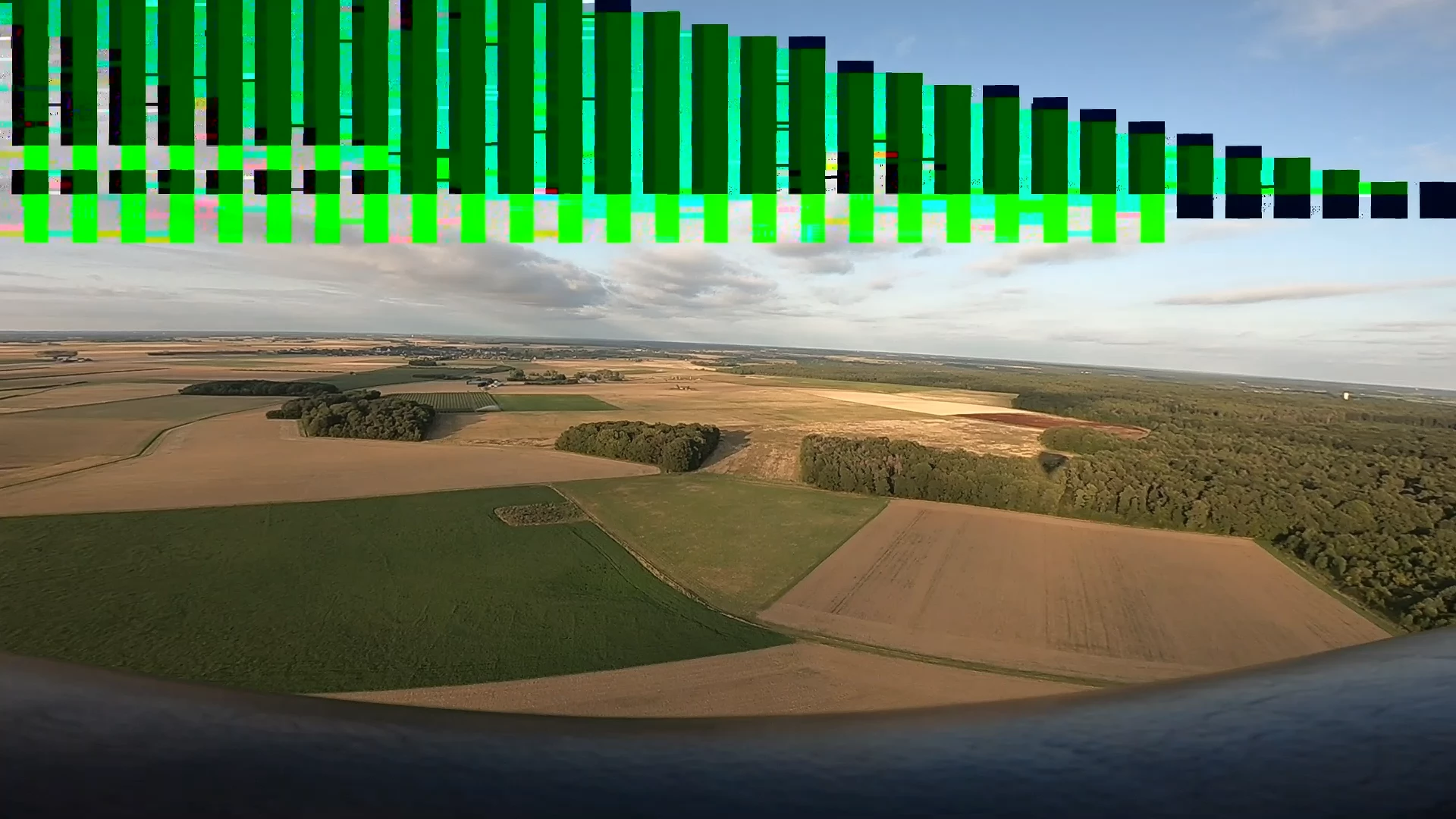 footage shot on gopro 1080p resolution. noticed that green bars but smaller in preview and was thinking that is preview or corrupted source issue.