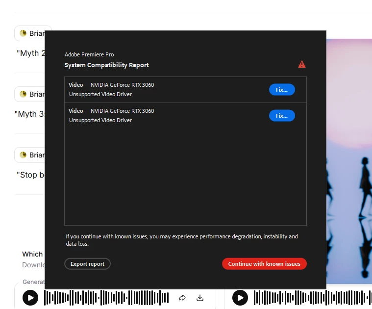 Welcome to the community! Please check if you have installed the latest Studio driver for RTX 3060. The latest Studio driver can be found here.