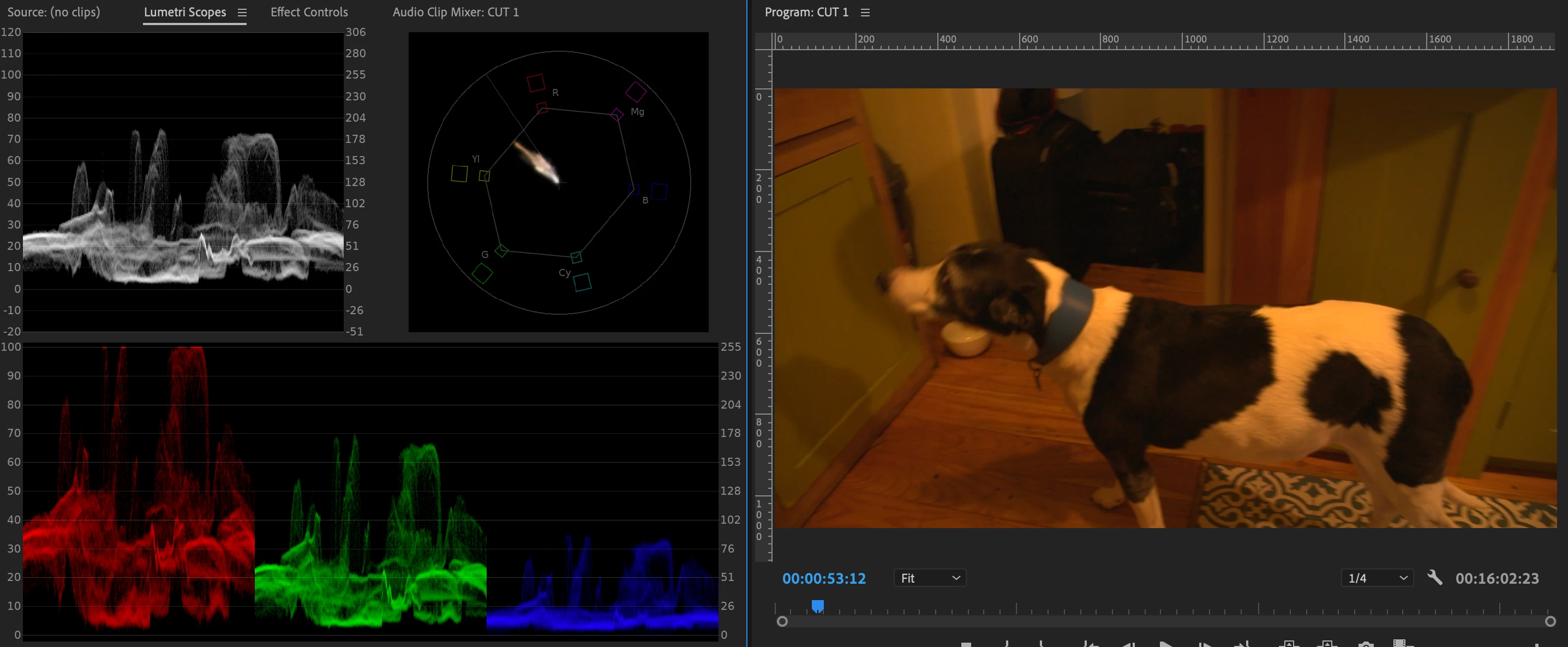 Next it would be nice if you can raise the BLUE a little bit ( not that much really )... and that will get rid of the slight orange ( yellow ) you see... Unfortunately I only use an old version of PPRO that doesn't have lumetri so I don't know how to tell you the exact control to use.