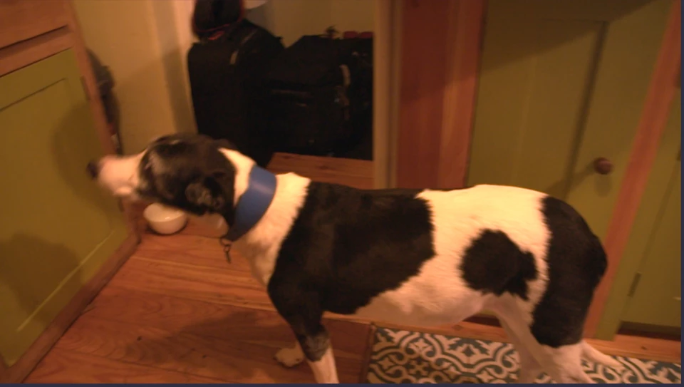 I went into curves, selected blue channel and raised the MIDDLE of the line a little bit. This effected some of the yellow ( orange from 32k when shot at 56k ) and mostly the dog collar.