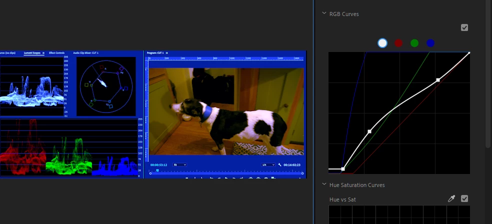But even if you DON'T lift the blue channel your doggy will look much better by just increasing the highlight.  It's too bad nobody knows how to help you with the version of PPRO you are using. But don't worry... it can be fixed.