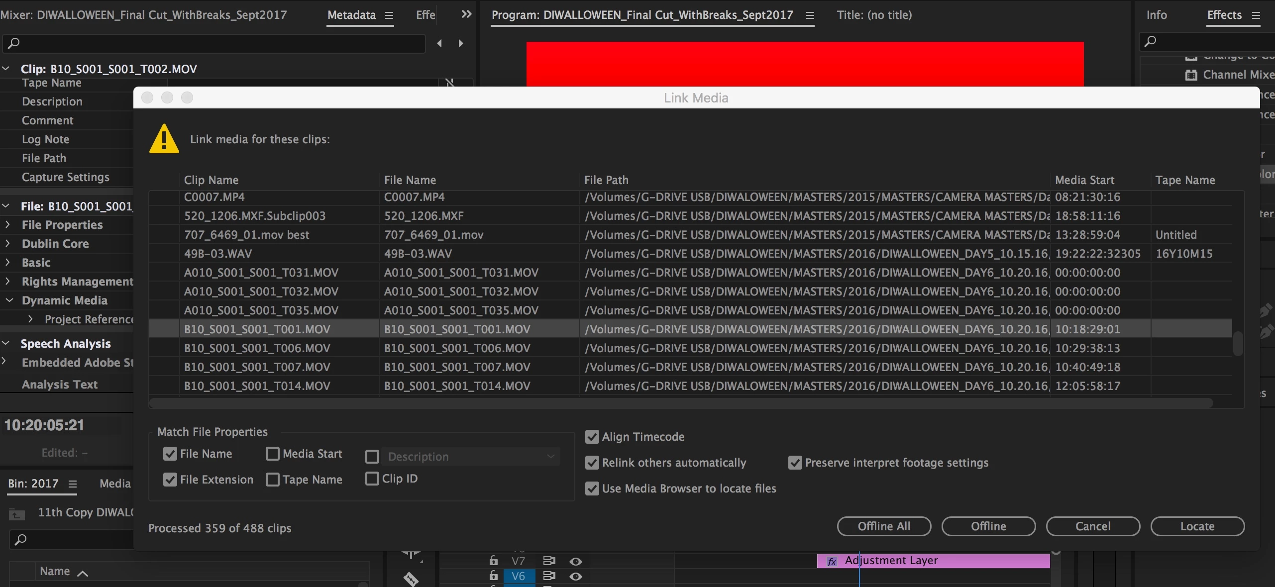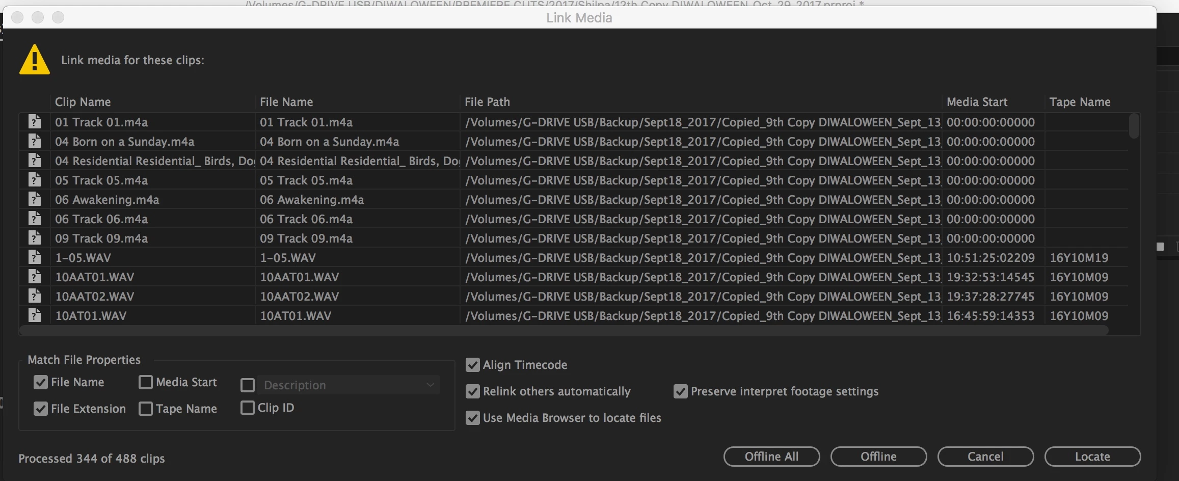 - I tried batch Offline by selecting more than one file in the Link Media window, and same thing.