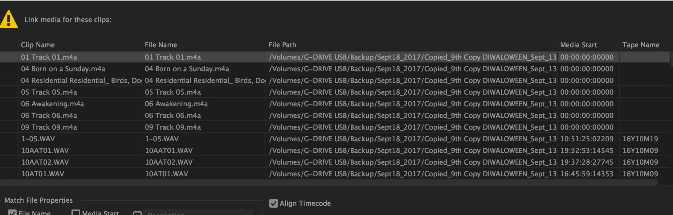 ----> 100's of files list in the Link Media Window. Most of these are linked to the wrong (Backup) folder.