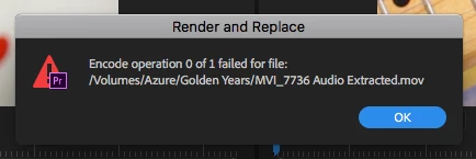 Since updating to the April 2018 Premiere Pro release I've been getting this error when I try to render and replace audio. However I've i choose to send the clip to Audition it will render and replace.