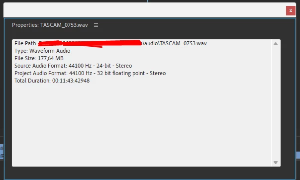 How can I fix this? The file works correctly and I can edit and play it in Premiere Pro. The project is located on an external hard drive. On which I have already mounted many projects and everything was fine.