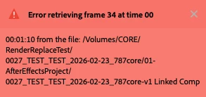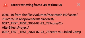 - Steps to reproduce – Render and replace a comp, restore unrendered, and render and replace again. Premiere gives “cannot find frame” errors until you close and open Premiere again.