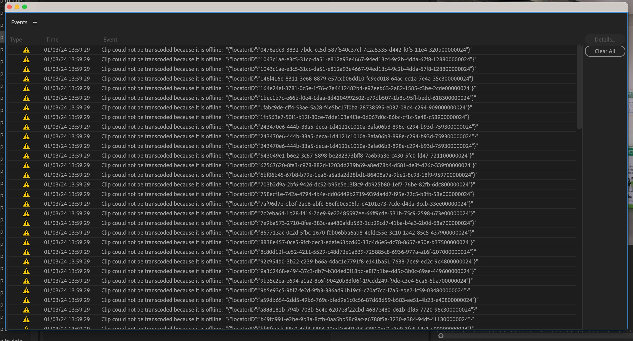 Hi, I'm trying to use the "Render and Replace" feature for the first time but I keep getting an "offline" message for, what it looks to be, every single clip in the sequence. The clips are online.