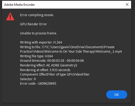 I'm getting a error message that doesn't tell me how to correct the issue. See the screen shot below.