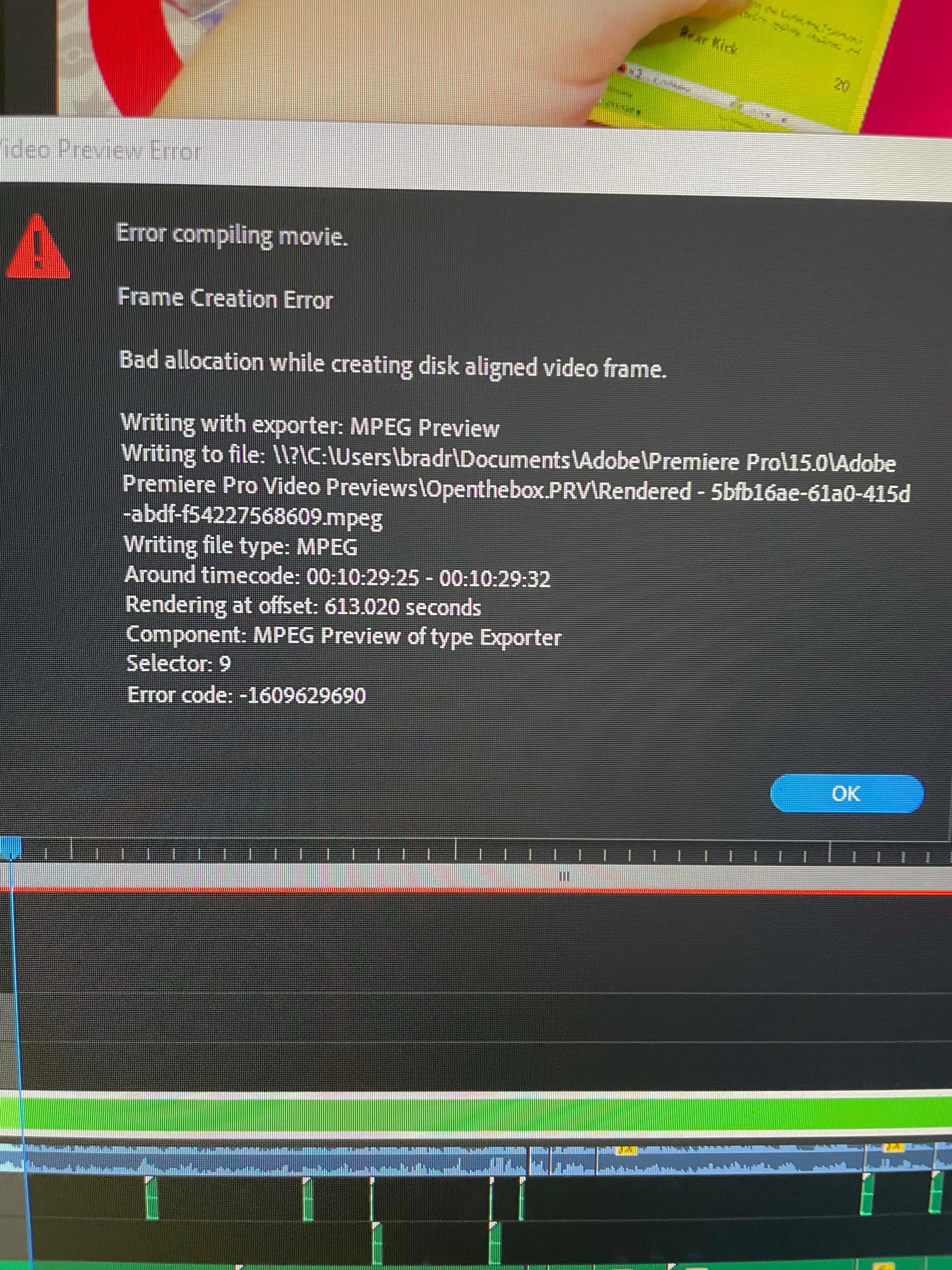 I have suddenly not been able to render or export any videos as of a couple days ago. I cant render the time line without many errors coming up so i removed the problem frames and any effects in it and tried again. same errors. then it was low memory so i cleaned out half my terrabyte drive for space and used cc cleaner and the adobe built in cashe remover and then it was another error withing the exporting where my computer went silent and stopped rendering around half way. i have tried to un insatll and reinstall, i have tried older versions, i have tried restarting everytime i try to render or export. i have tried to render out of the encoder program. crashed half way many times. i have tried with render only software options, exoprt without hard ware using software. I have tried just rendering a completly different 20 min video and it has same problem when it has no editing done to it, just the plain video. I have tried to just export many times and everytime the error time is different. two times I managed to render 11 mins out of 22 and the video was cut short after that 11 min mark cause my comp crashed but i was able3 to view the video after i restarted.