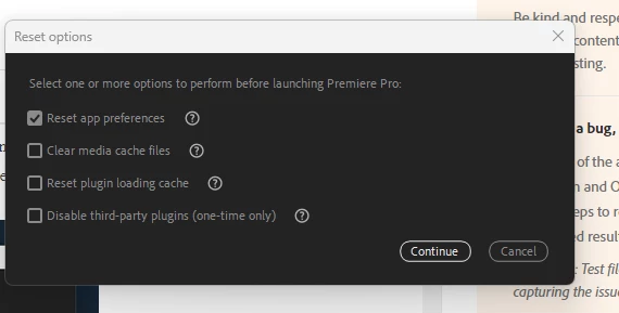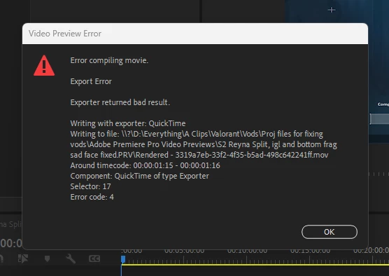 This happens on any project I go into. I try to render the video ( and this image comes up. I'm not sure why. I've updated and reinstalled premiere and restarted my pc multiple times. Not sure what else to do. Also, this second image just popped up for the second time. Any idea what's causing this or how to fix it?