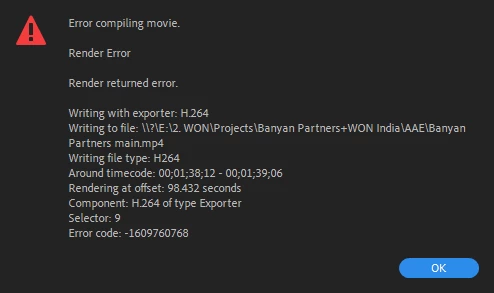 I have the same error exporting from Premiere, it started getting it, after I upgraded to the latest version 13.1.