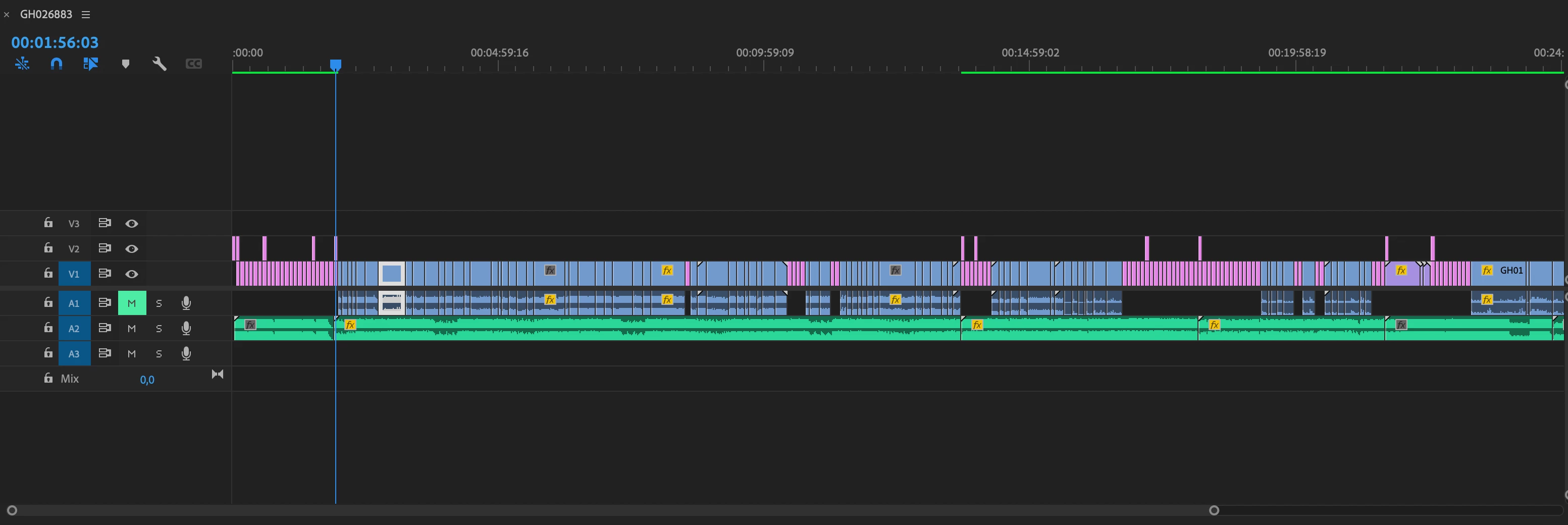 Total time of the project/video is approximately 29 minutes. From minute 1:59 to 13:40 I only see a black playback screen in preview but I hear the music added. I also saw that in the part that is not displayed that there is not a green line in the bar above the timeline, in the parts of