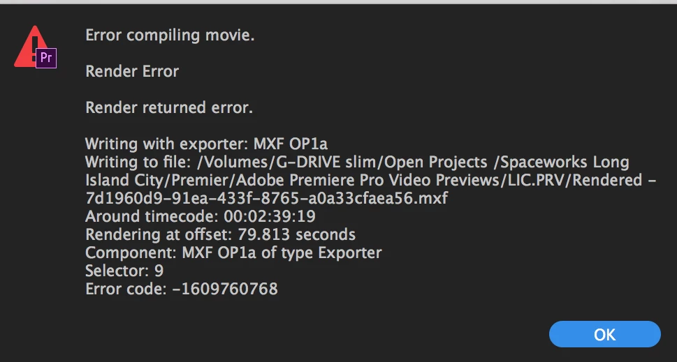 I am working in Adobe 11.1, Mac OS X and getting this error code when I go to render: