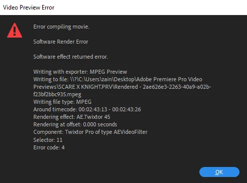 I can't render a XML exporter timeline out of Davinci Resolve in Premiere Pro and gives me the error code 4 aswell..