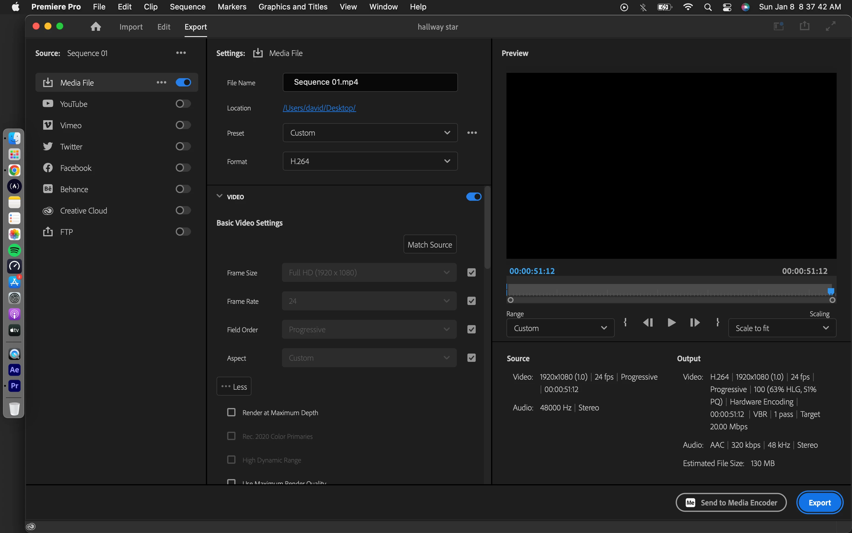 Post screenshots sequence settings, clip properties, export settings.