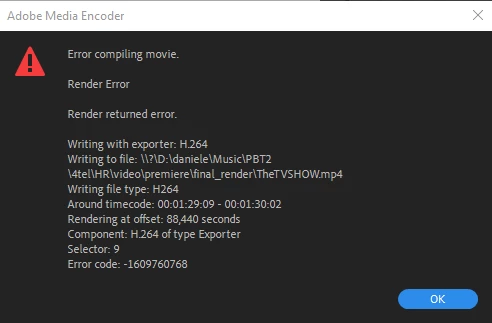 Whenever I try to render my video, I get this message