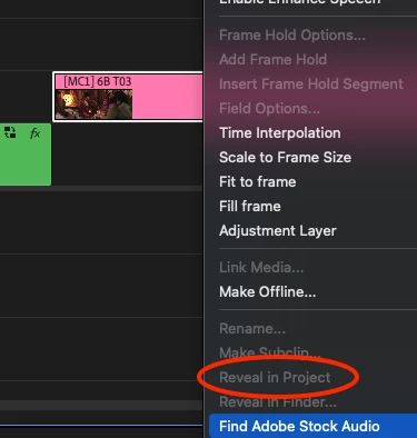 1) When right-clicking on a clip in the timeline, I click on the 'Reveal in Project' command but nothing happens. I'm using the standard workspace configuration