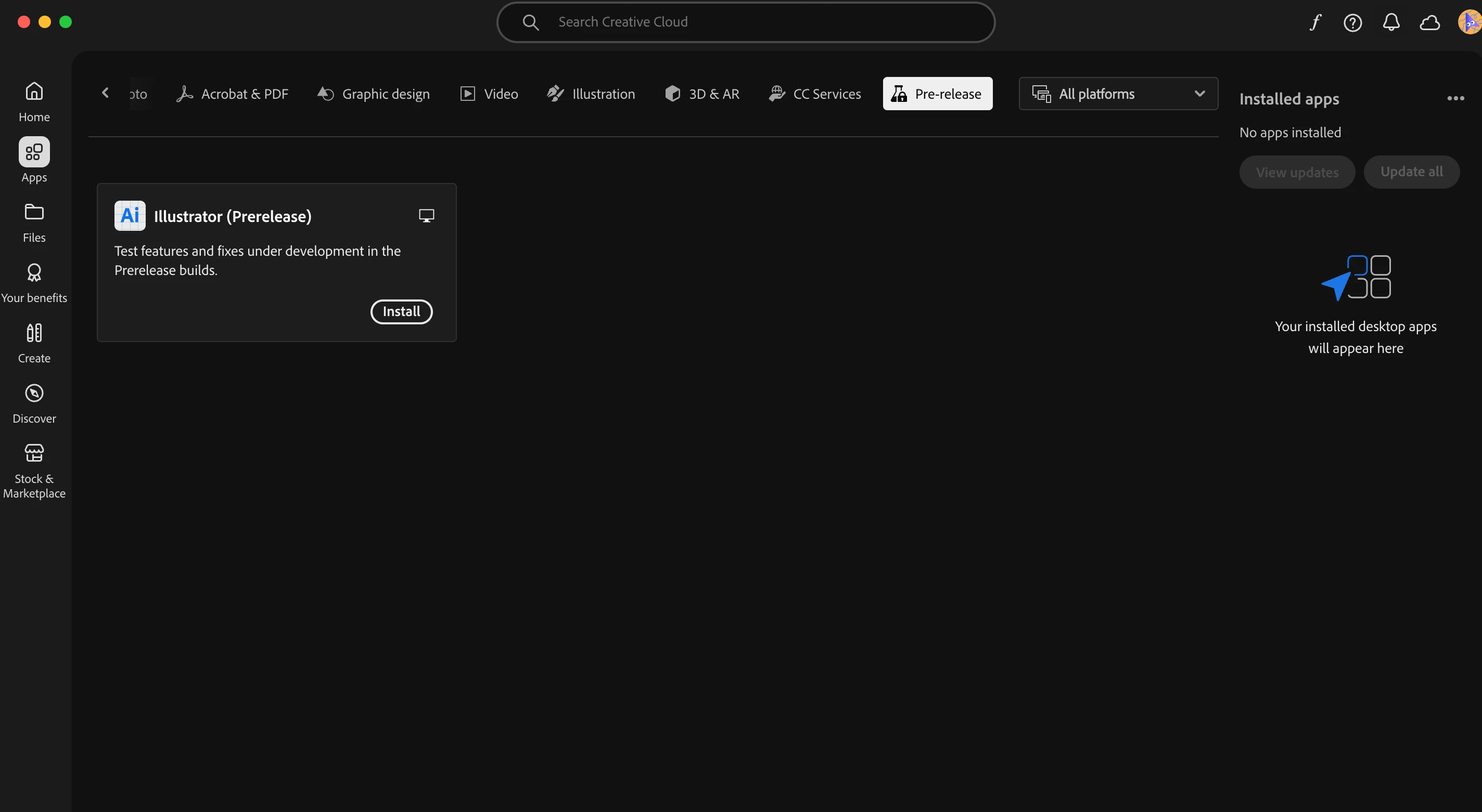 How about a screengrab of your CC Desktop app? Unusual to not have the betas available.