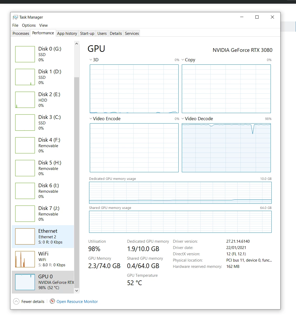 Currently I'm editing a video that is a Macbook Pro Screen recording over a video that includes narration. And this is what task manager currently looks like. I'm particularly drawn to the Video Decoding chart.