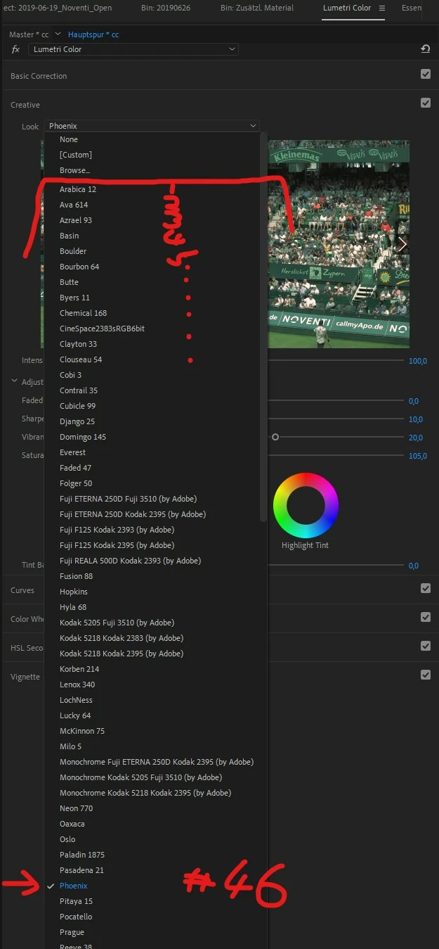 Let me try to be brief: A colleague works on an iMac with both MacOS as well as Adobe Premiere Pro set to German language. He created this project, did the final touch in Lumetri Color and saved it all on a network drive we all have access to. Later I had to do some final adjustments in the project. Naturally I opened up the project with my machine, a Windows 10 PC (german) with Adobe Premiere Pro set to English (as well as the complete Creative Cloud Suite), which you will notice in the coming screenshots. After opening up the project I noticed the look was completely off. I could compare the colors inside Premiere with the final MP4 he rendered earlier – they were completely different. I figured it was due to the different LUT, which was selected inside Lumetri Color. In my project it was set to "Phoenix". My colleague initially used "SL CLEAN STRAIGHT HDR". After running back and forth between those two machines I could affirm, the old project on his machine was saved with this LUT and when I opened up the project the LUT changed.