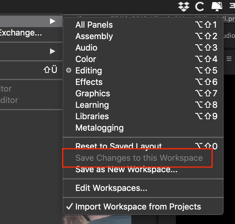 "Save changes to this workspace" is greyed out