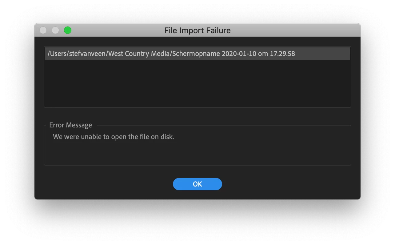 But i get this notification on Premiere Pro: "File import Failure'