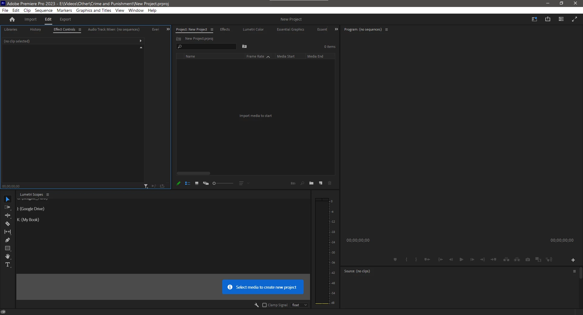 Once I have completed the dialog to create a new project and click the "Create" button, Premiere Pro displays the empty project workspace. But there is text left over from the dialog that only goes away when I close the new project. I have to reopen the new project to use it.