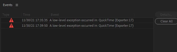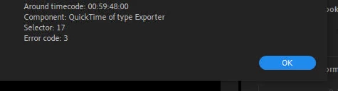 I keep getting the error in the screenshot when trying to export from Premiere Quicktime ProRes. 2021 software is up to date, please advise, thank you.