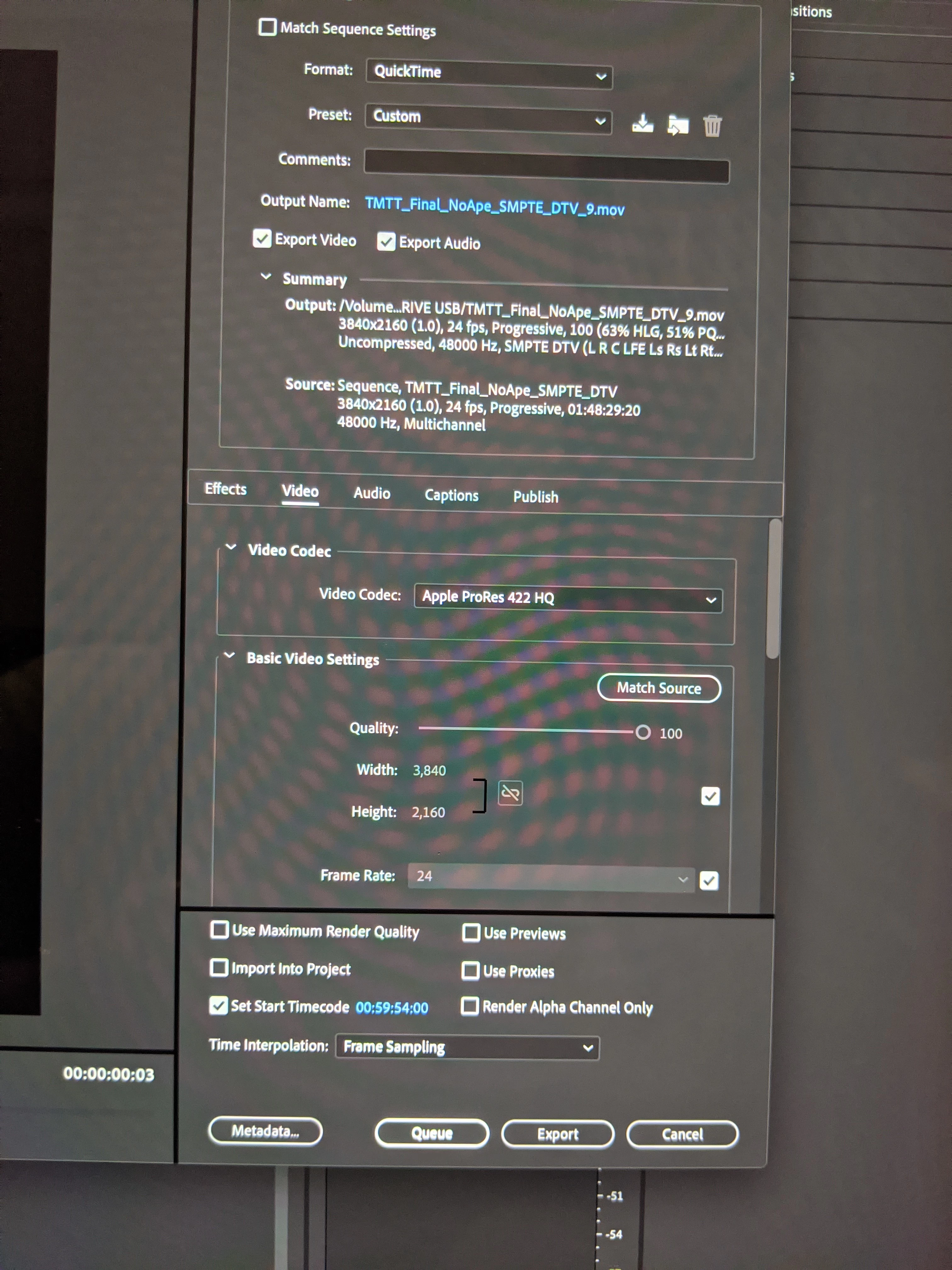I am attempting to set my timecode to 00:59:54:00 for my ProRes 422 HQ Export: