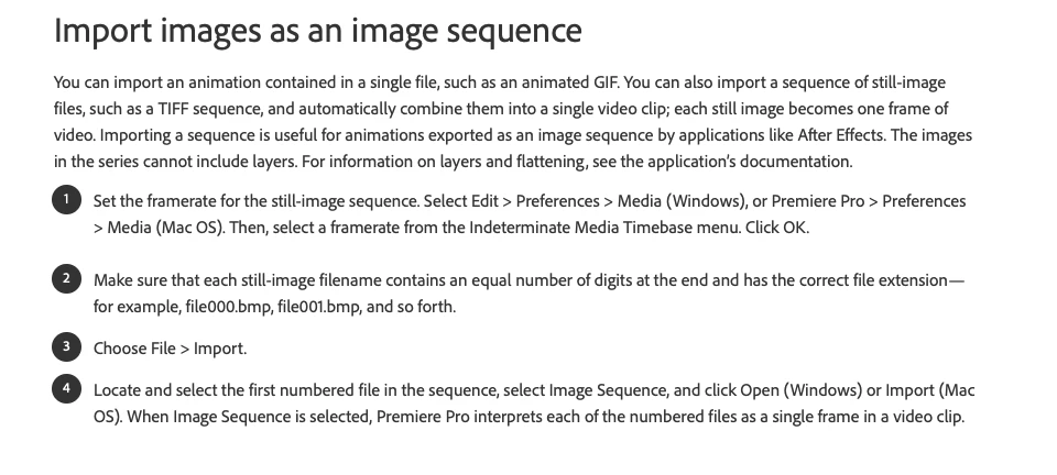 Setting frame count for Image sequence into premiere pro CC